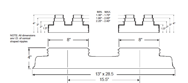 - Furnish and install the Portals Plus Double Pipe Portal at all points where up to eight pipes 1" - 2" in diameter penetrate the roof.