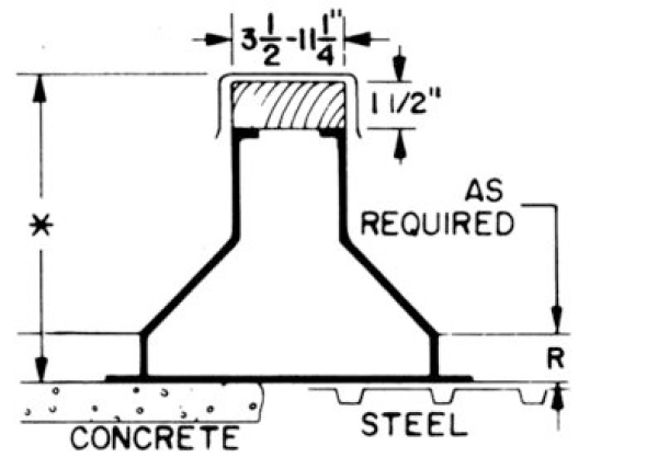 - On Built-Up or Modified Bitumen Roofing, Steelor Concrete Decks with insulation use style ER-4A with built-in cant, starting 1.5" above baseplate, extended to fully mitered corners with a height of 9.5" overall.