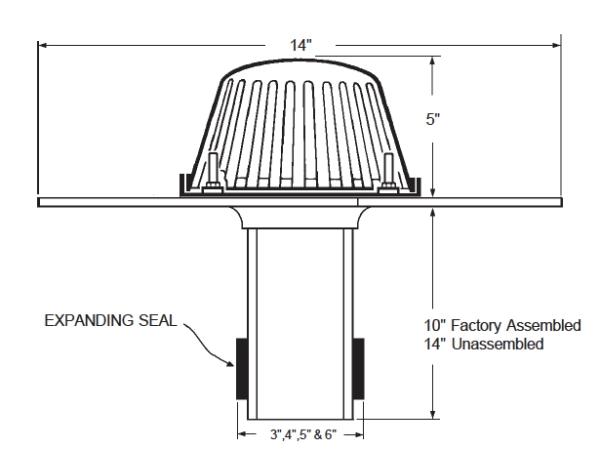 High-Performance Seal: Outlet pipe features modified asphalt-impregnated expanding foam sealing tape with –40°F to +185°F temperature tolerance and 150% minimum elongation.