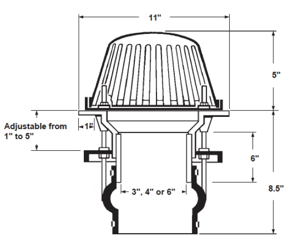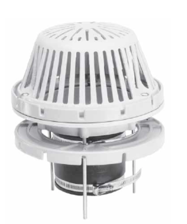 - Drain shall consist of a molded ultraviolet stabilized cast aluminum dome strainer