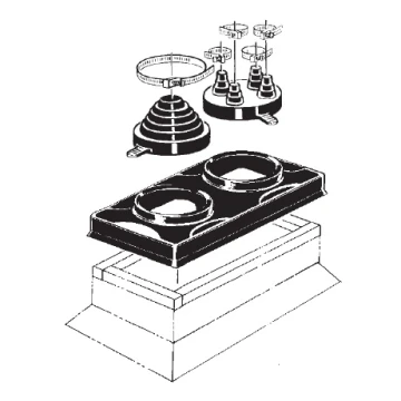 - Furnish and install the Portals Plus Double Pipe Portal at all points where one penetration 2" - 6" in diameter and where up to four pipes .375" - 1" in diameter penetrate the roof.
