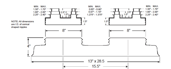 - Furnish and install the Portals Plus Double Pipe Portal at all points where up to four pipes .375" - 1" in diameter and up to four pipes 1" - 2" in diameter penetrate the roof.