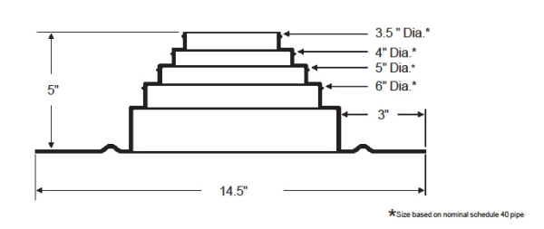 - For pipes, tubes and conduits 3.5" to 6" nominal, use Portals Plus Large Retrofit which has a height of 5", a base diameter of 14.5" and capable of accepting various adapters